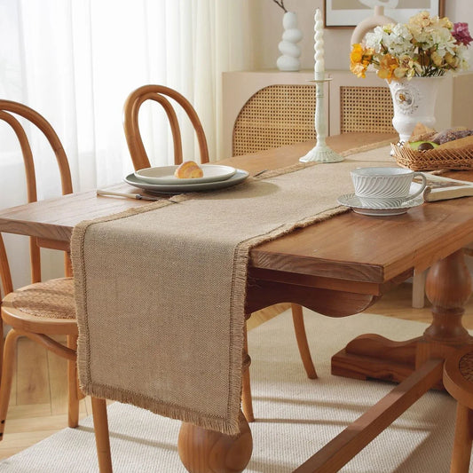Whether it's a family meal, a magical wedding, or a surprise birthday party , the table runner is that little detail that makes all the difference. In one gesture, it highlights the line of the table, protects the tablecloth, and guides the eye toward your most beautiful plates. Washed linen, burlap, waffle cotton, macramé, or even bamboo: each material tells a story and invites your guests to share a warm moment. Are you looking for a trendy sage green model for 2025 or a splendid terracotta ? You've come to the right place!