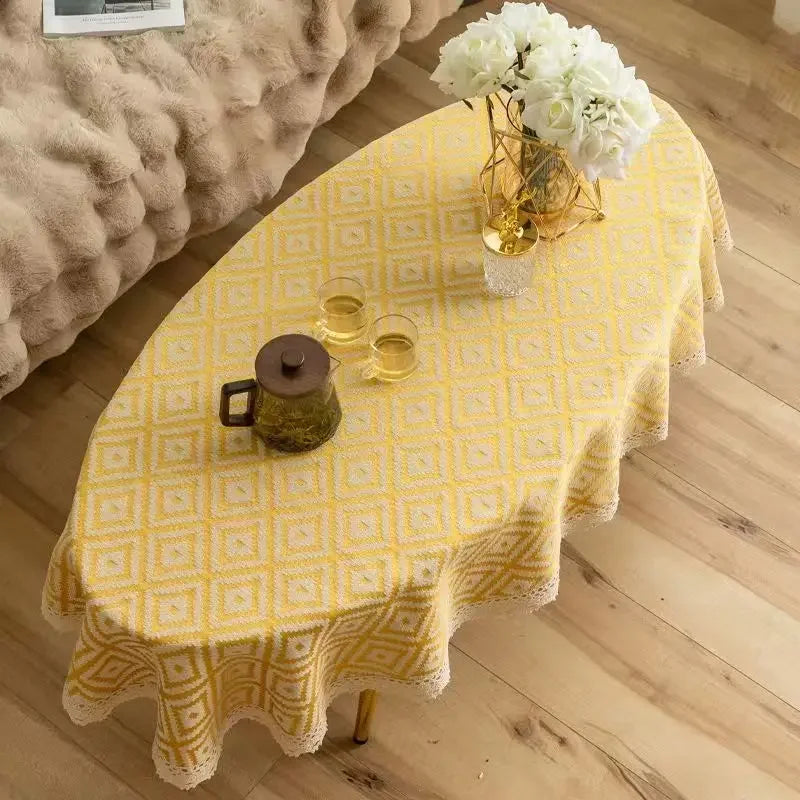 Pour un repas de fête ou un banquet, associez la nappe à des serviettes en tissu, des bougies fines et un chemin de table légèrement contrasté. La texture crochetée ressort discrètement, et la table prend une dimension plus cérémonielle.