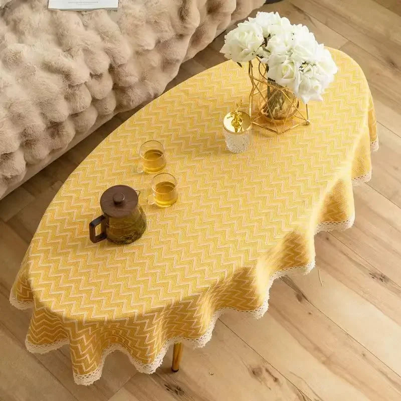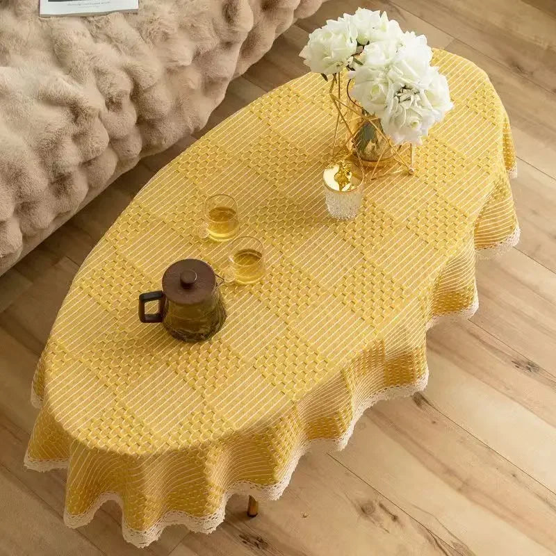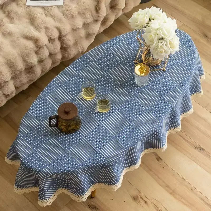 Cette dimension généreuse convient à de nombreux modèles de tables ovales ou rectangulaires aux angles arrondis. Elle permet de couvrir largement le plateau tout en conservant un joli tombé.