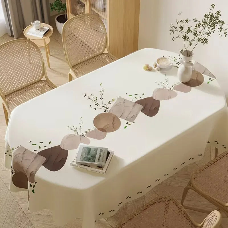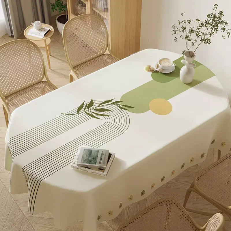 Une nappe ovale suit les courbes de la table et adoucit visuellement l’espace, tout en facilitant la circulation autour du plateau. Sur une table arrondie ou aux angles adoucis, elle offre un tombé plus harmonieux qu’une nappe rectangulaire classique.
